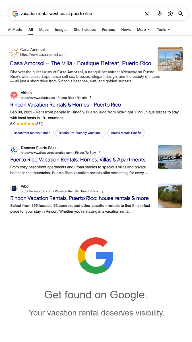 See your new website → casaamorsol.com — Already live, and visible on Google.